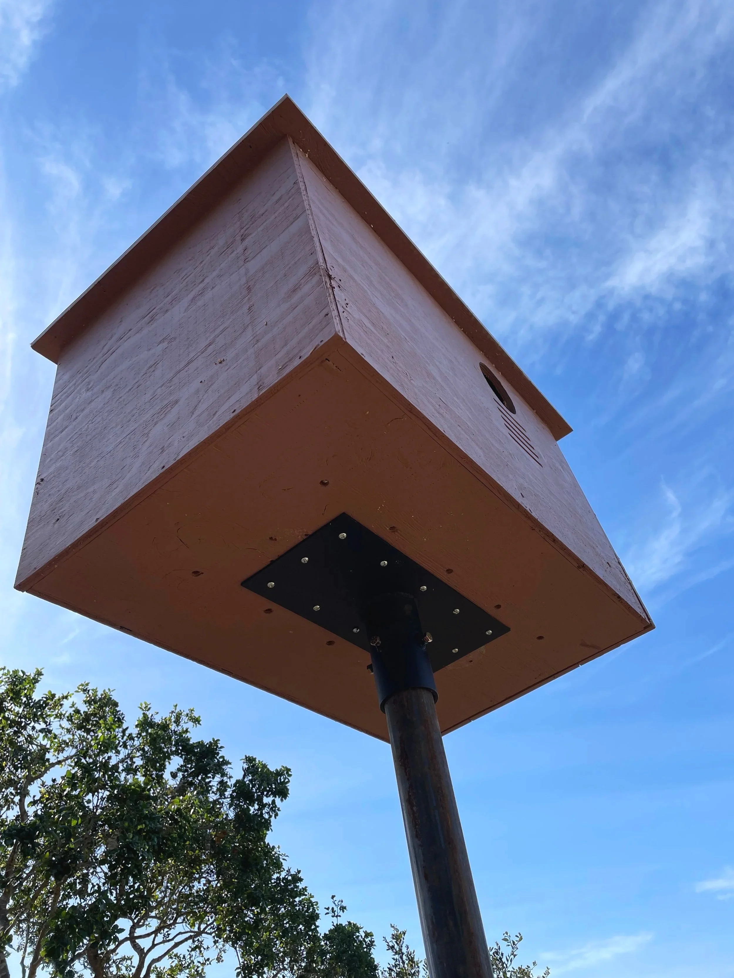 Our custom design is based on the latest research for optimal internal dimensions, size and height of the opening, and air flow. This ensures the adult and young owls have space to move around, spread their wings, and encourages multiple sets of chicks raised per season since the mating pair spends more time in their box.